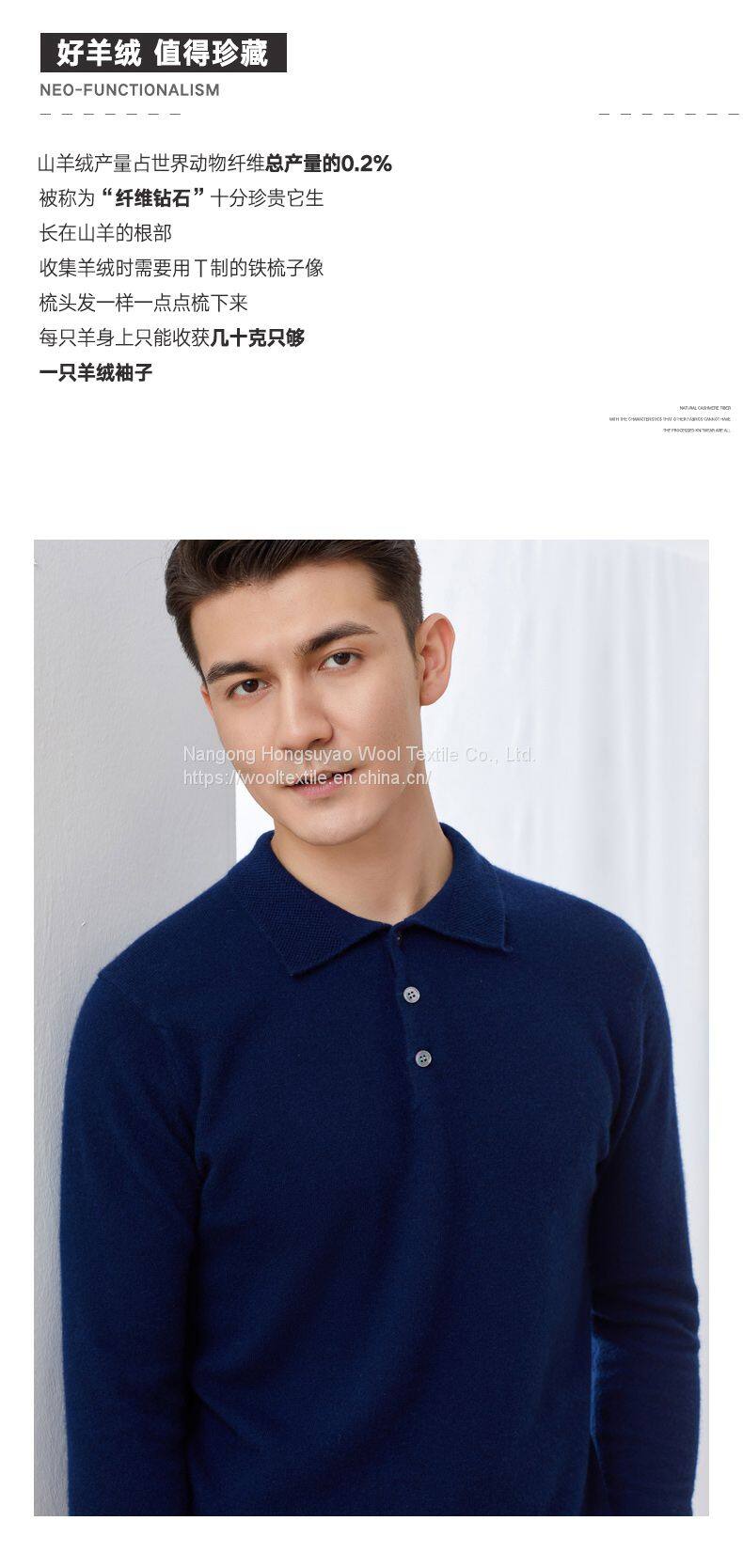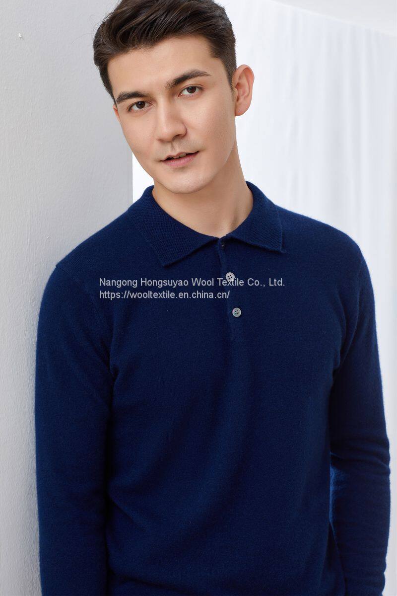 Polo Collar Long Sleeve 100% Wool Jumpers Knitted Cashmere Sweaters for Mens