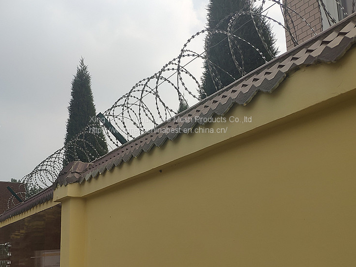 because of large cover area and easy installation ,so razor barbed wire becomes very ideal material for private or public security on the top of the wall to anti climb .