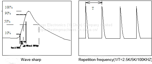 The electrical fast transient/ burst generator is to simulate the electrical fast transient or burst, the repetitive fast transient test is a test with bursts consisting of a number of fast transients, coupled into power supply, control, signal and earth ports of electrical and electronic equipment.