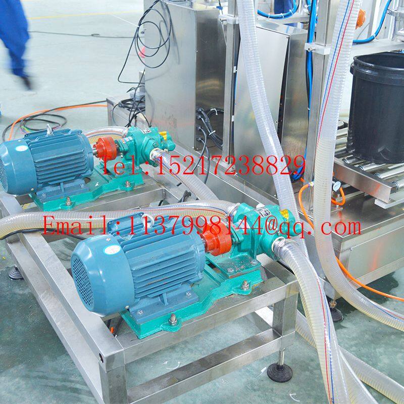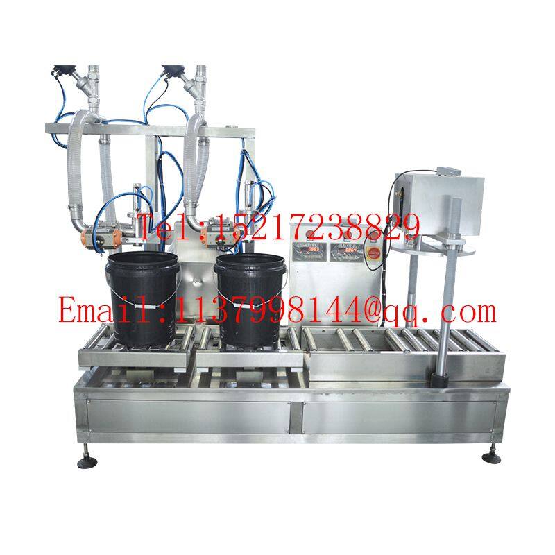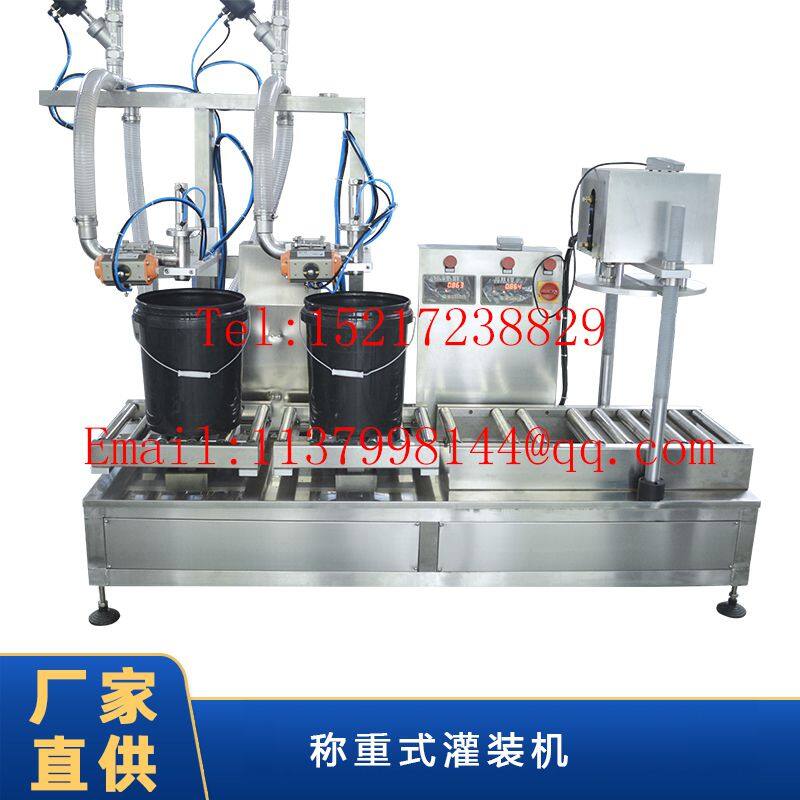 The automatic weighing filling machine is composed of a dynamic weighing module, a touch screen and a highly automated digital display filling device controlled by PLC system. Filling process, the first fast and then slow filling method, not only improve the output, but also improve the filling accuracy. Simply place the container on the conveyor belt and transport the container to the filling station via the conveyor belt, which automatically Remove the tare weight and automatically fills. This equipment is used together with automatic press plug machine, automatic capping machine, and automatic labeling to compose a production line. It is widely used in daily chemical, chemical and food industries. Such as: Lubricants, car urea, pesticides, liquid fertilizers, syrups, oligofructose and other products.