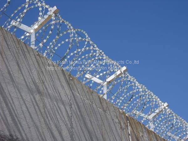 Hot Dipped Galvanized Razor Barbed Wire 450 Mm Coil Diameter 7kg/ Roll For Fence