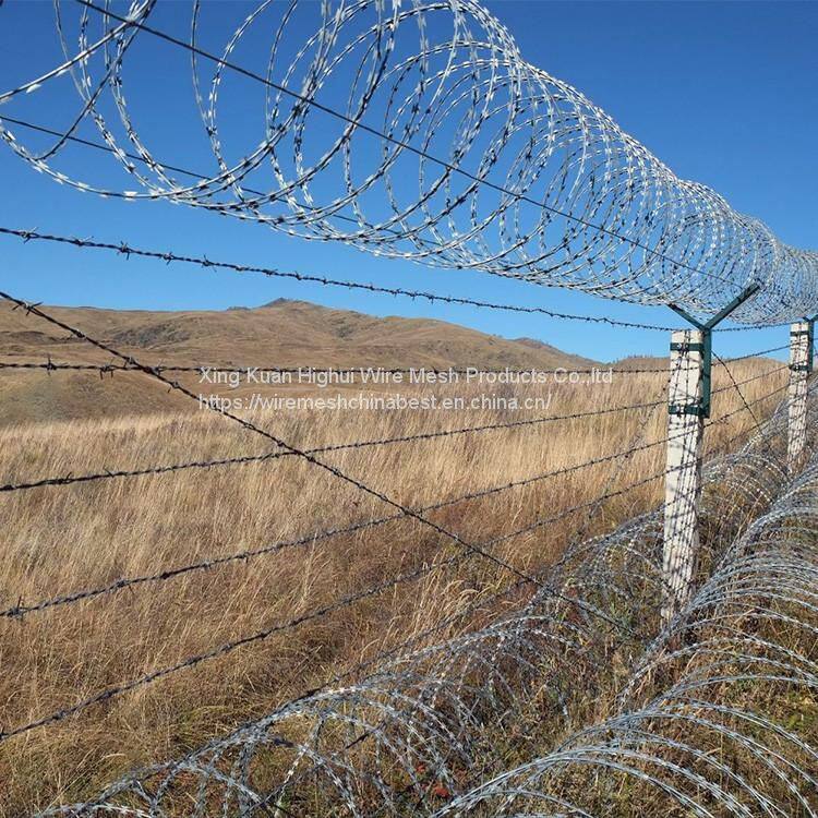 The razor barbed wire, is a new type of protective net. The blade barbed wire has excellent characteristics such as beautiful appearance, economical and practical, good anti-blocking effect and convenient construction.
