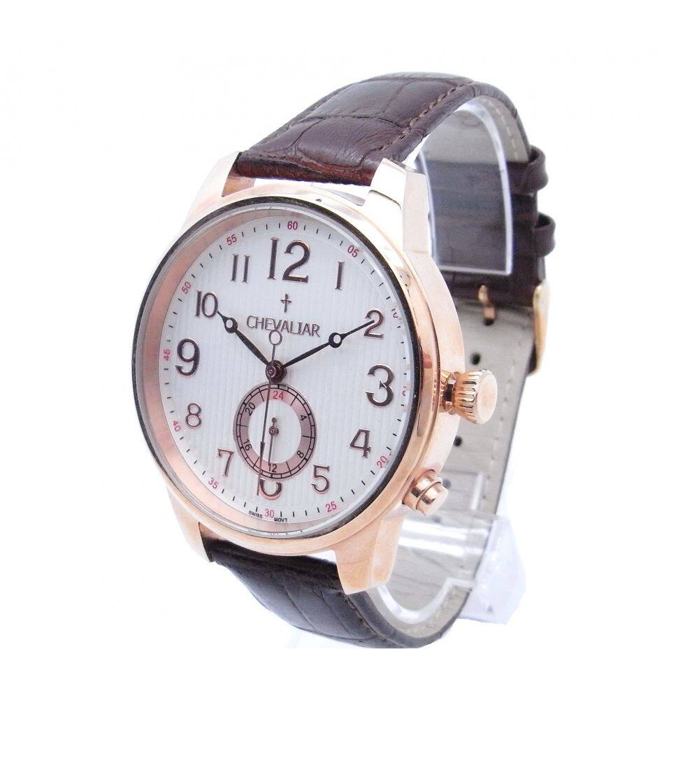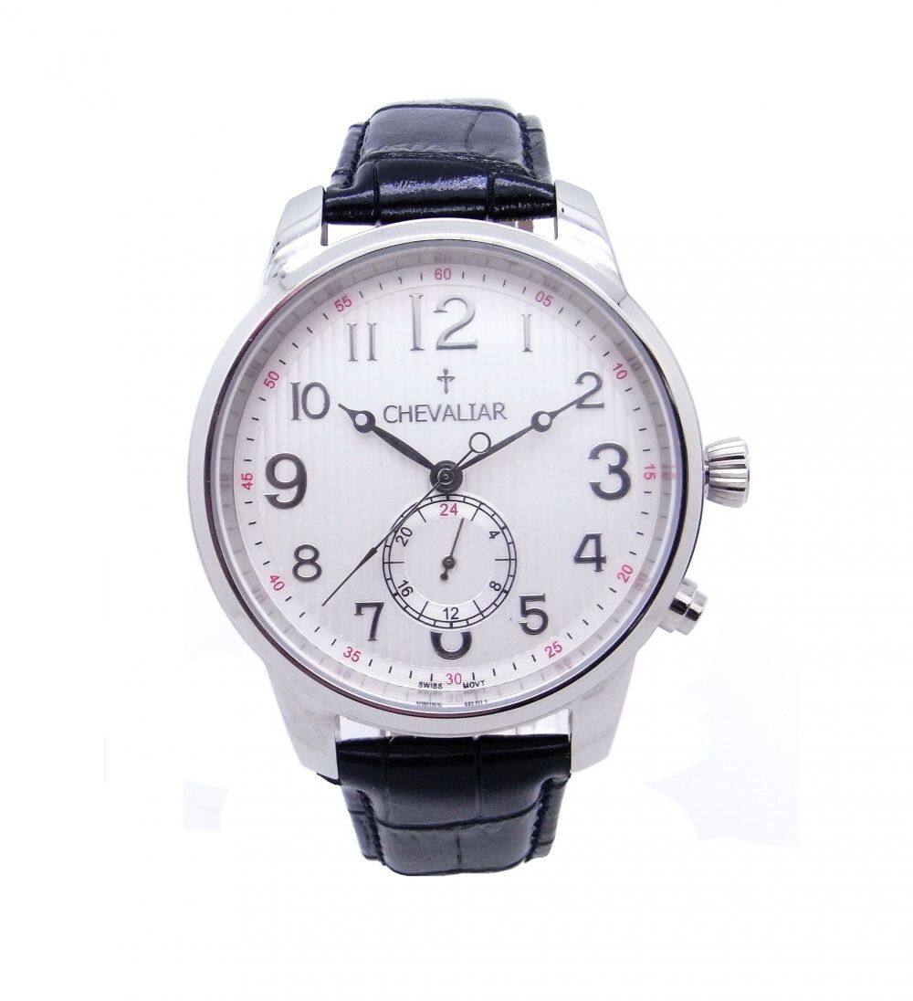 Stainless Steel Case Fashion Man Watch Genuine Leather Dual Time Quartz Watch
