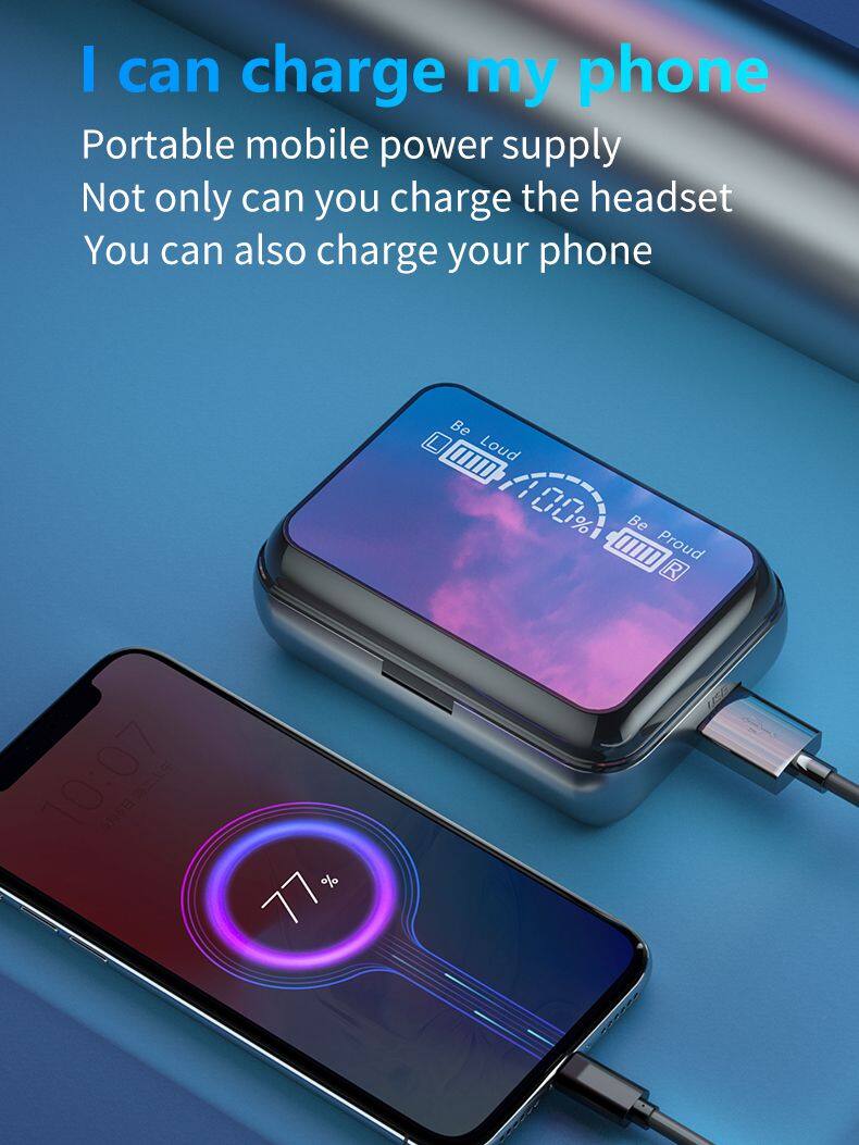 TWS Wireless Headsets Large Capacity Charging Box Bluetooth-compatible Earphones Sport Waterproof With Touch Control