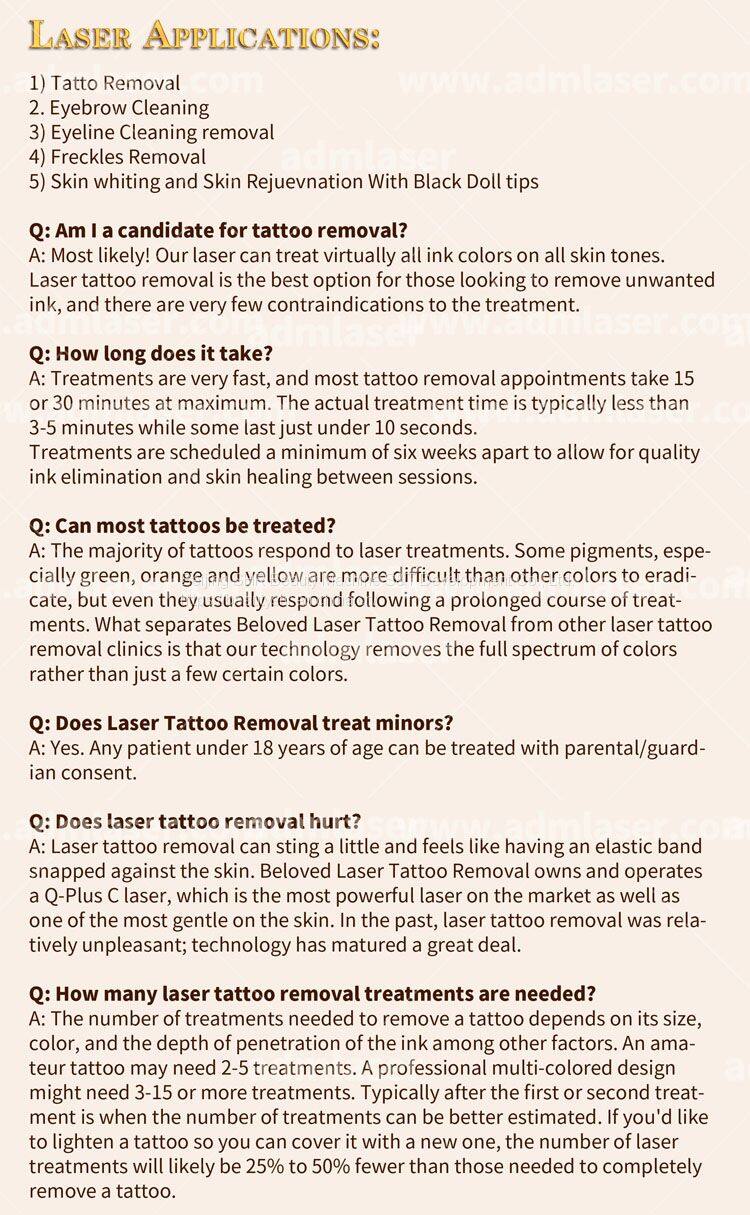 Nd yag tattoo euqipment adopts the Q-switch mode, which makes use of the instantaneous emmitted laser to break the pigment in ill structure. That's the laser instantaneous emit : centralized high energy emit suddenly, which makes laser of settled wave band instantaneous penetrate through cuticle to the ill structure in 6ns, and break the relevent pigments quickly.