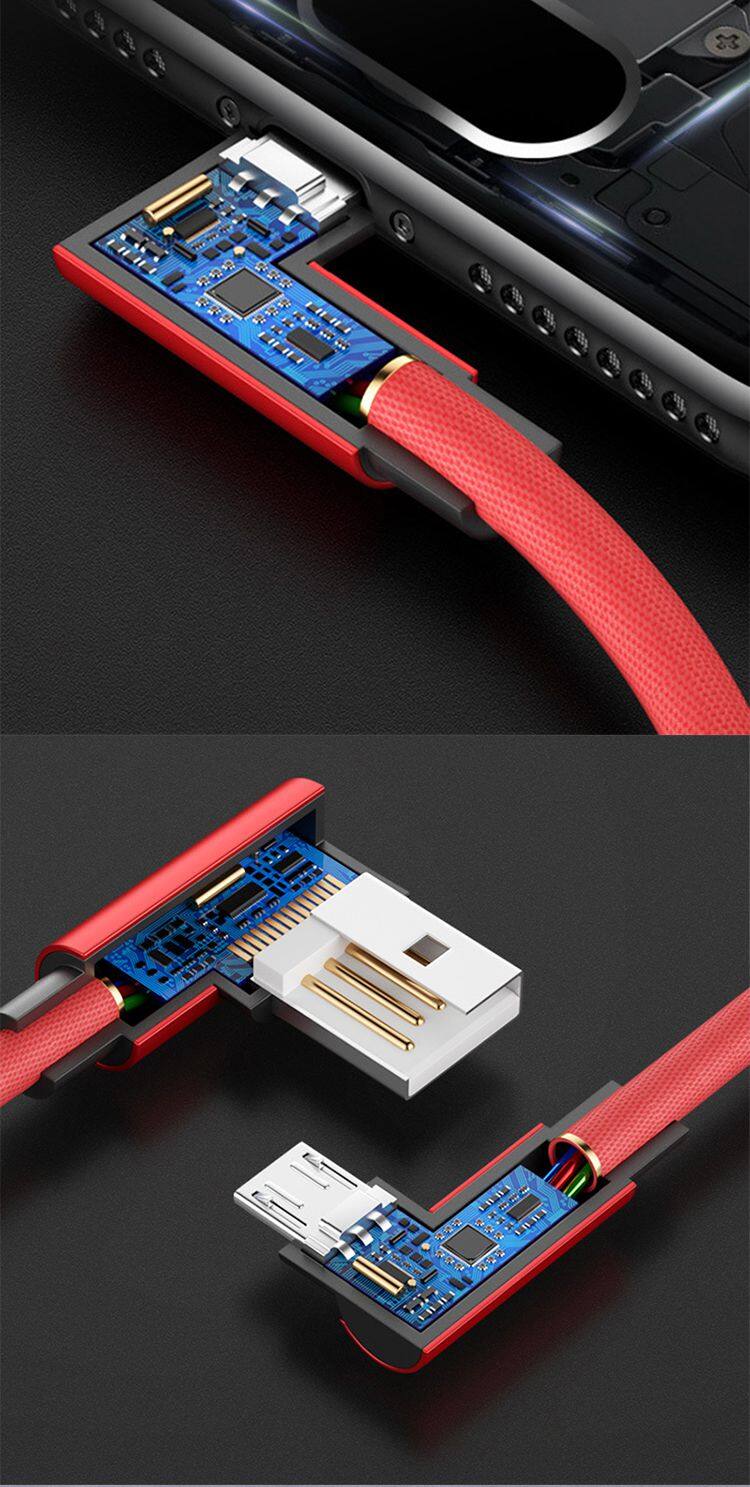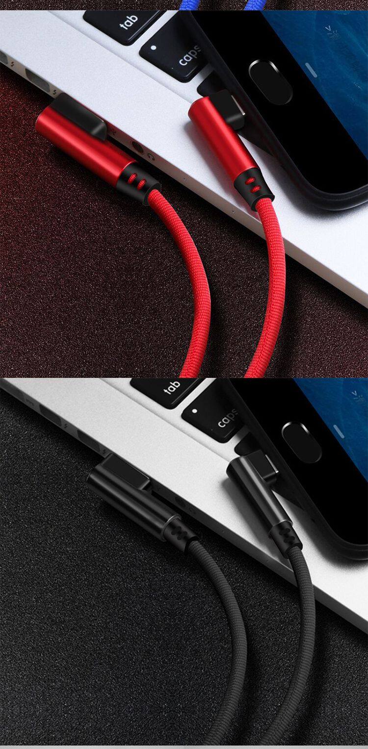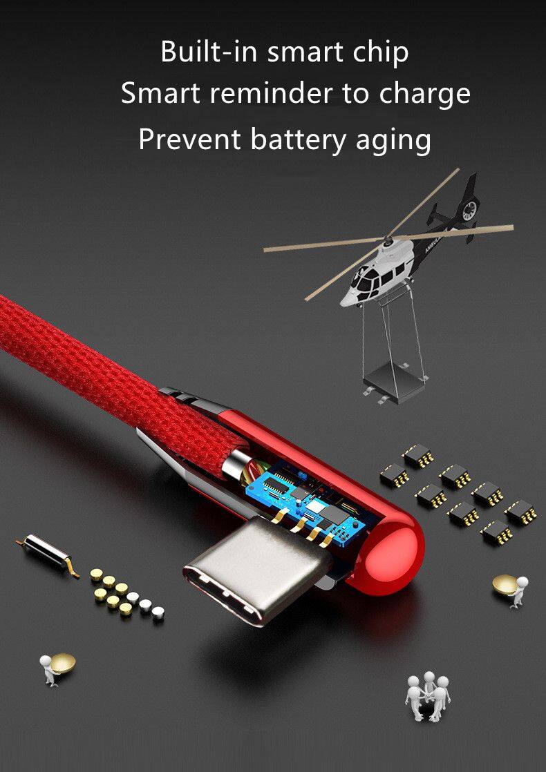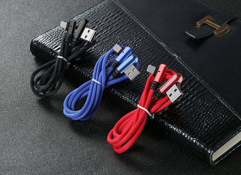 USB Cable Double Elbow Charging Data Cable 2.4A Suitable for Samsung Huawei Xiaomi With LED Indicator