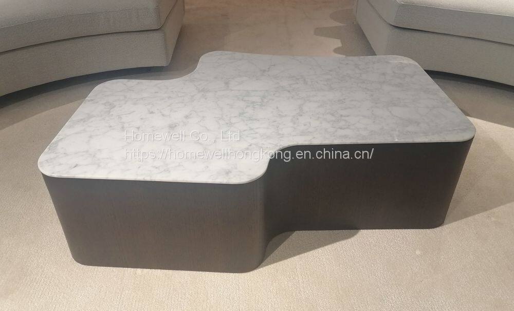 Modern Real Marble Top Curved Coffee Table LT1805 Marble Top With Wooden Base-livingroom Furniture