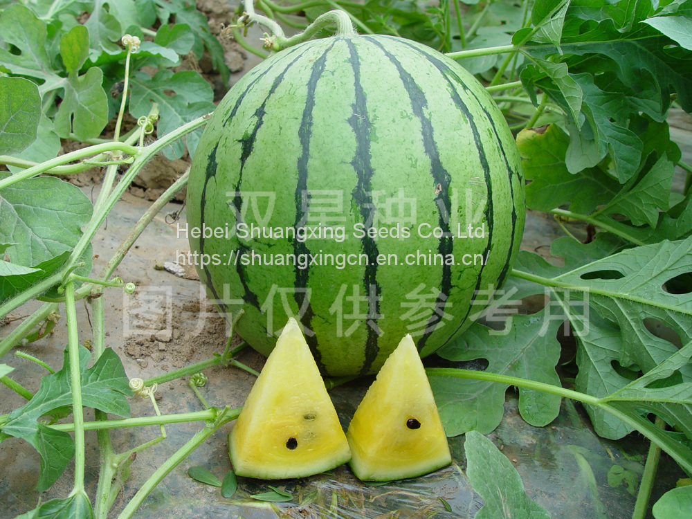 1. Early-maturity: 24-26 days after flowering. 2. Fruits are round, emerald green skin, narrow dark stripe on light green, beautiful appearance. 3. Weight: 2 kg under extensive field management; 6 kg under precision field management. 4. Yellow crystalline flesh, sweet and crisp flavor, rich juicy. 5. High commercial value.