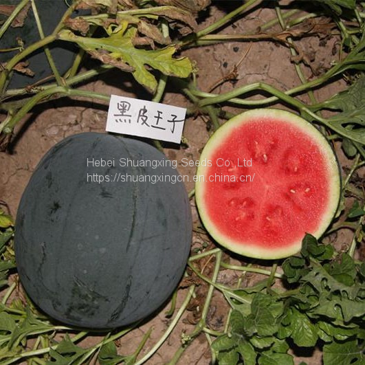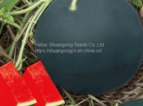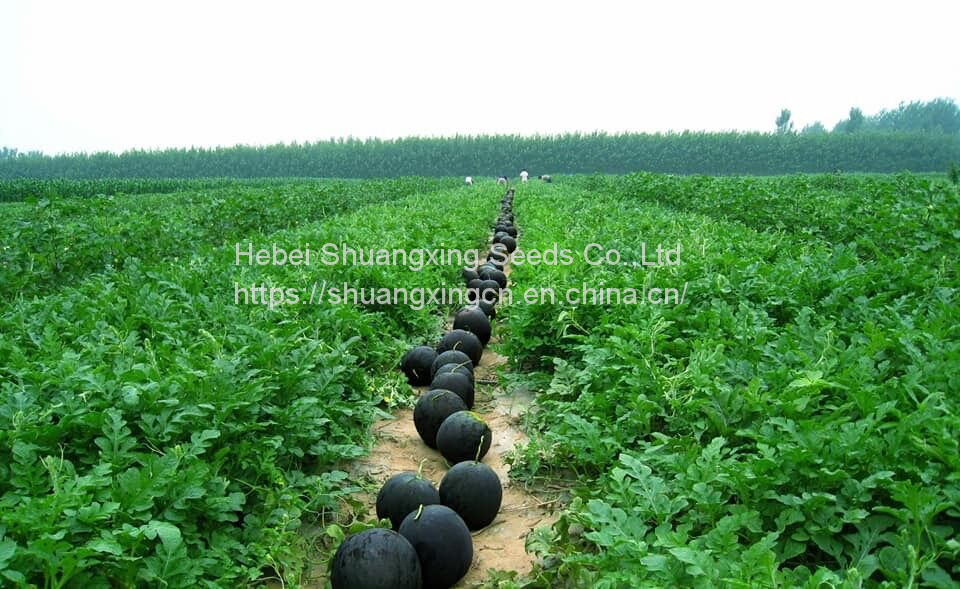 A new large-sized seedless watermelon variety with beautiful pure black skin. Middle-maturity watermelon variety. Vigorous and easy growth. Average fruit weighs 8kg and up to 25kg with grafting. Bright red, juicy and crispy flesh and no hollow heart. The central soluble solids content is over 12.5%. Good resistance to disease and humidity. It is particularly tough rind for storage and shipping. Good adaptability.