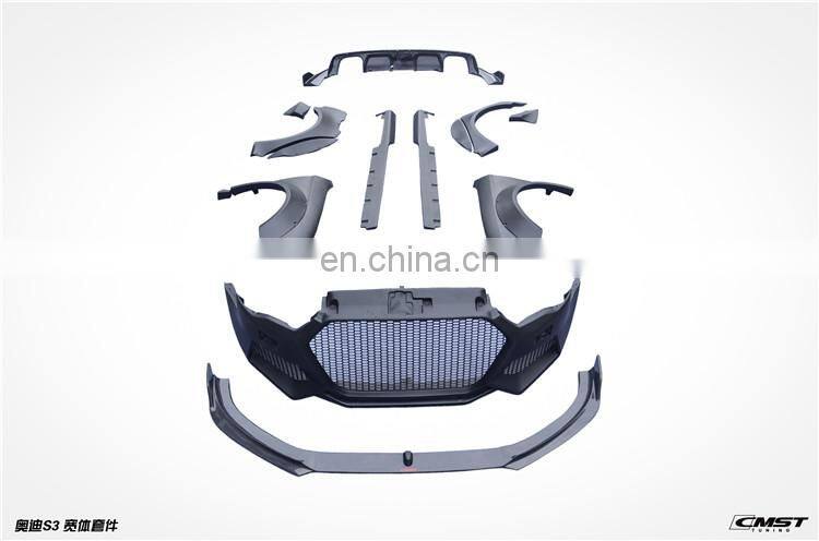 Wide Body Kit for Audi s3 Style Front Bumper Wide Flare Carbon Fiber Front Lip Rear Diffuser Hood Side Skirts Auto Tuning Parts