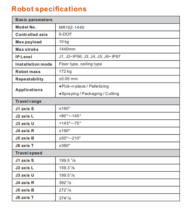 MR10Z-1440 Industrial Robots Positioners Handling Robots