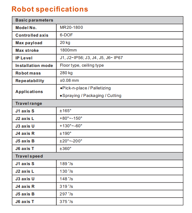 MR20-1800 Industrial Robots Positioners Handling Robots