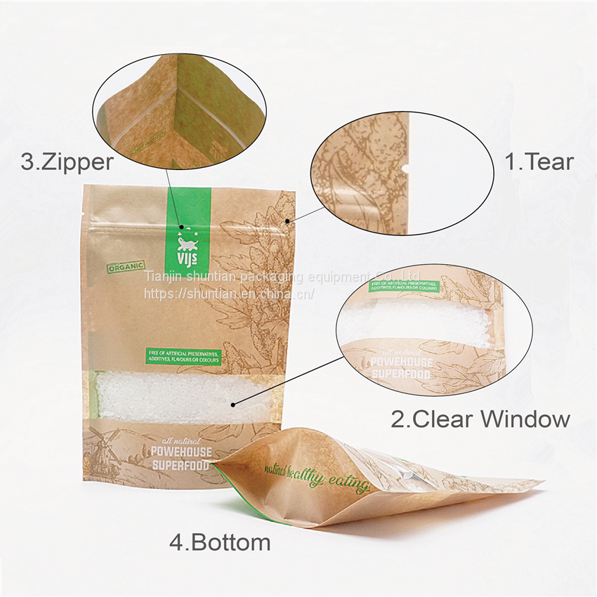 Kraft Stand up Pouches With Window Wholesale