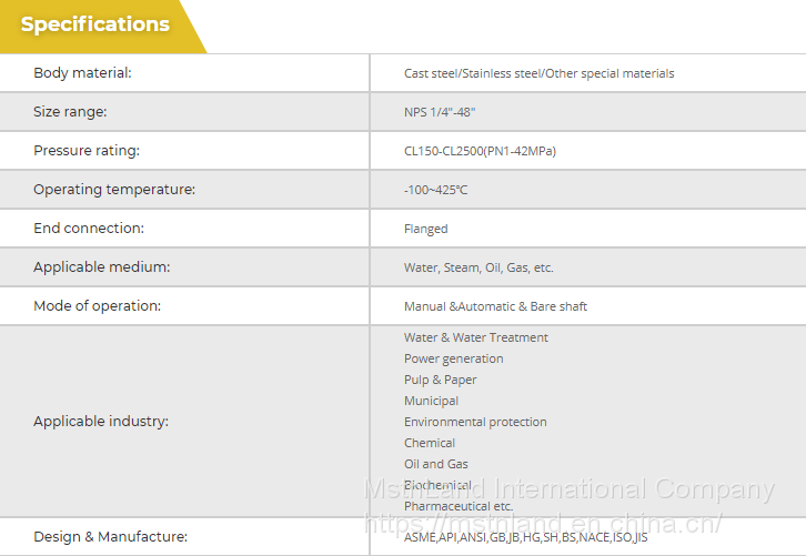 MstnLand is an international supplier and service provider of industrial valves and solutions. We integrate R&D, manufacture, resource integration and trade service into one, provide valve selection and procurement solutions for our clients with one-stop consultation and supply. Our industrial valves are widely used in petrochemical, general chemical, oil, gas, mining, refinery, power generation, general industrial, water conservancy, water treatment, paper making, marine, offshore, municipal engineering, heating, ventilation and etc.