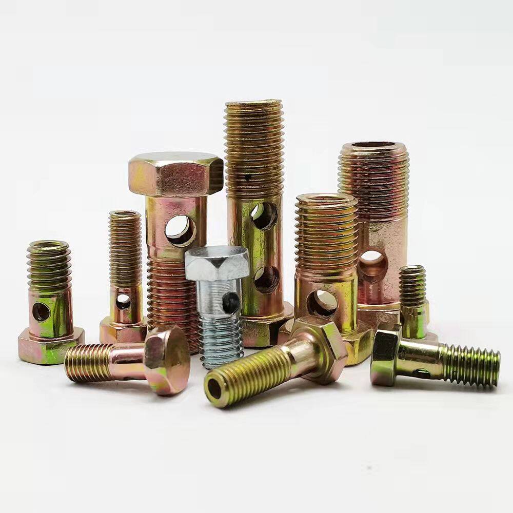 Double-hole hydraulic zinc steel banjo bolt M22X1.5 for hydraulic tubing