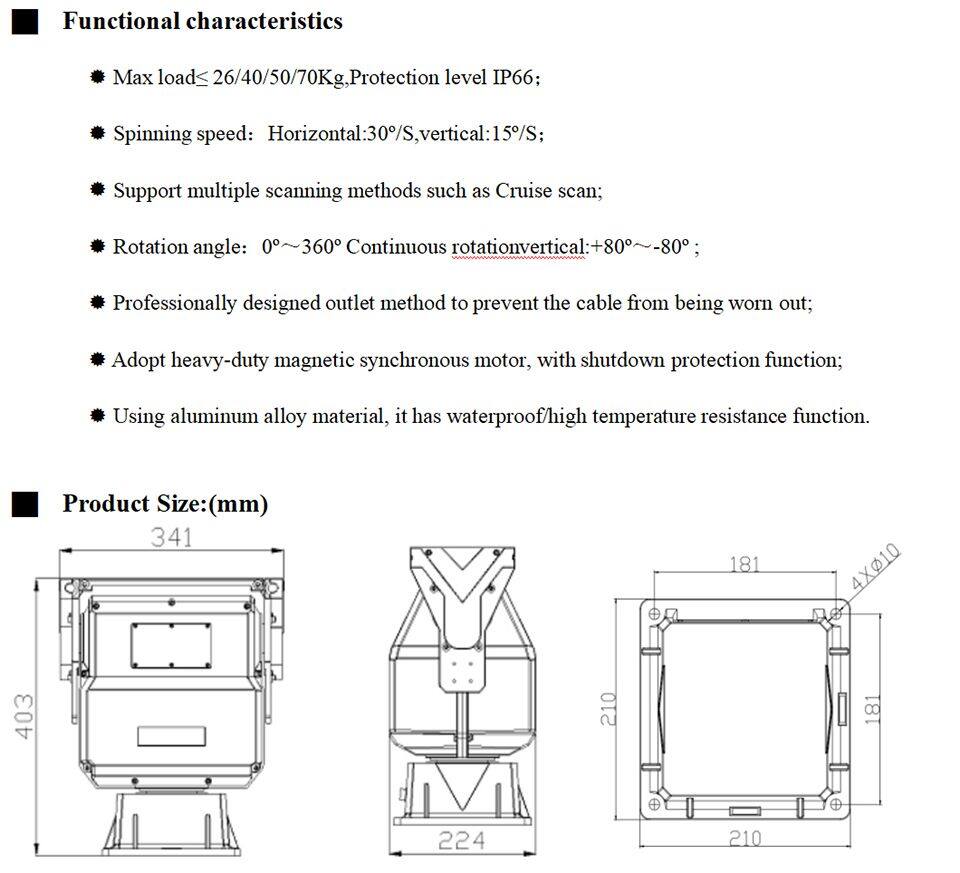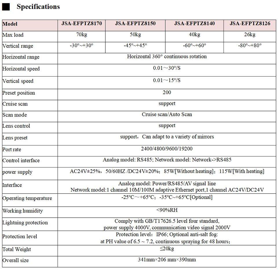26/40/50/70kg Network Type Heavy-duty PTZ, Suitable for AI Robots, Remote Monitoring, Etc.