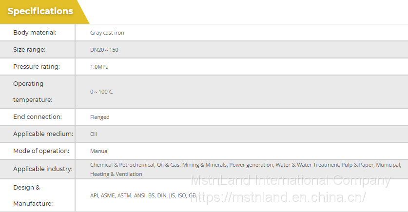 MstnLand's series of cast iron plug valves can be used for opening and closing of pipelines and equipment with non-corrosive medium that the temperature is not higher than 100℃
