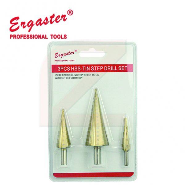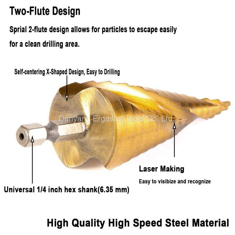 5-STEP DRILL BITS SET:Package includes 3Pcs straight flute step drill bit with size 4-12mm, 4-20mm, 4-32mm. 1/4" Hex Shank.