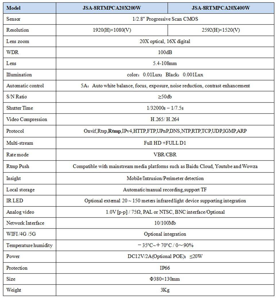 ● 2/4 million pixels 1/2.8 low illumination 20 times optical zoom