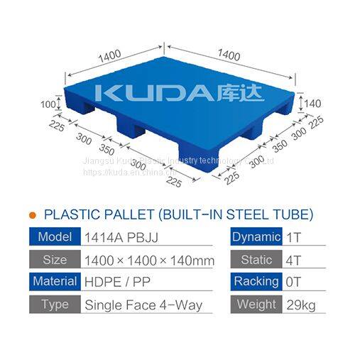Warehouse Export Used of China Manufacturer 1414A PBJJ PLASTIC PALLET(BUILT-IN STEEL TUBE)