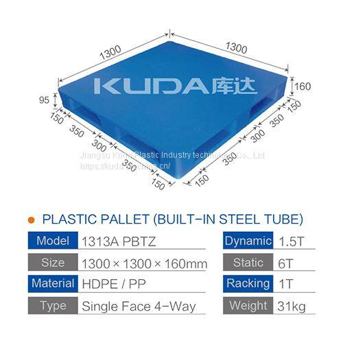 Industrial Pallet Solutions of China Manufacturer 1313A PBTZ PLASTIC PALLET(BUILT-IN STEEL TUBE)