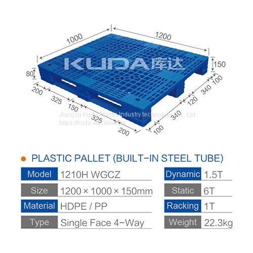 Warehouse Storage Solution 1210H WGCZ PLASTIC PALLET(BUILT-IN STEEL TUBE)from China