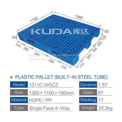 Low Cost Distrubution Pallet 1311C WGCZ PLASTIC PALLET(BUILT-IN STEEL TUBE)from China