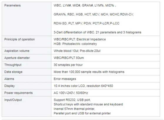 High quality Hematology Analyzer 3 part Blood Analyzer