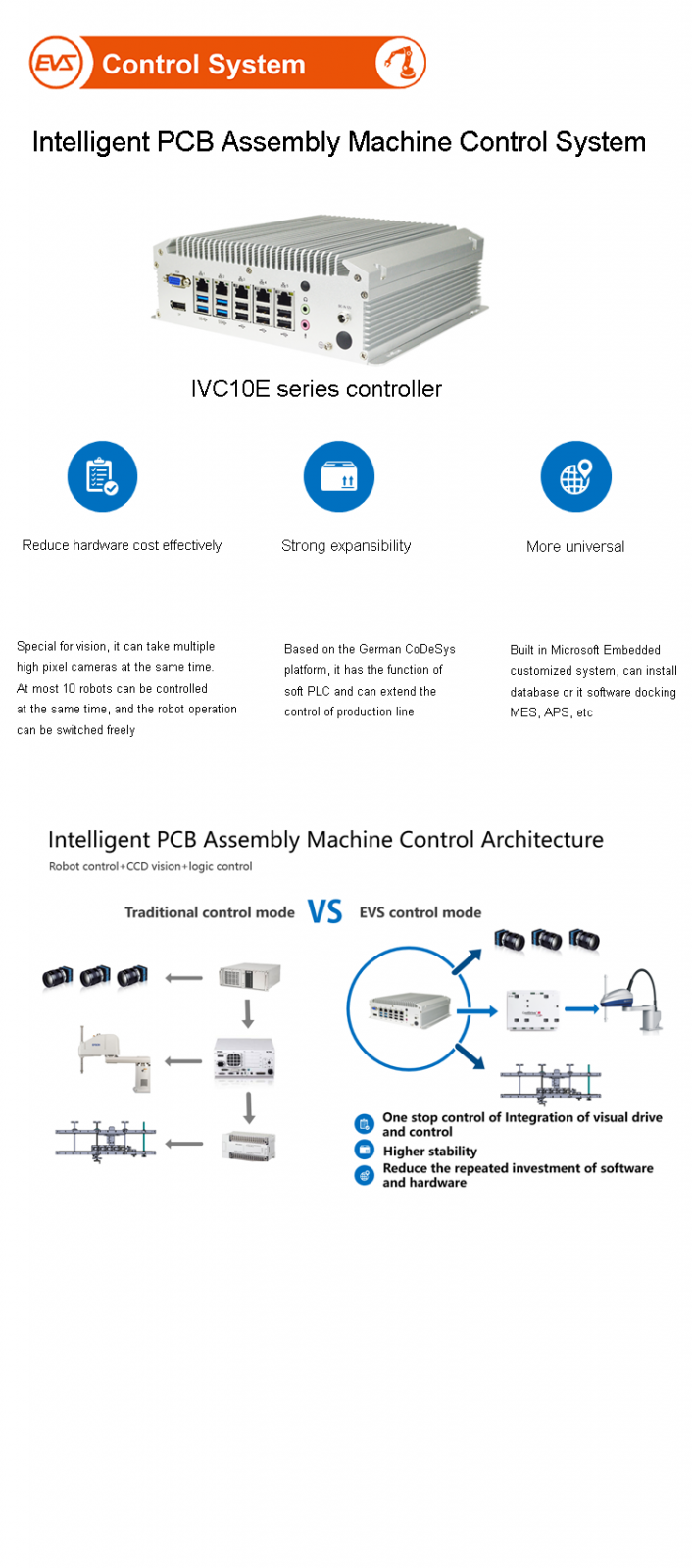 EVS has developed a new generation of intelligent PCB assembly machine based on the independent research and development of integrated control system in PCB industry. The appearance is generous and simple, and it has the characteristics of high integration, high precision and high flexibility, so as to meet the automation application requirements of industry customers.