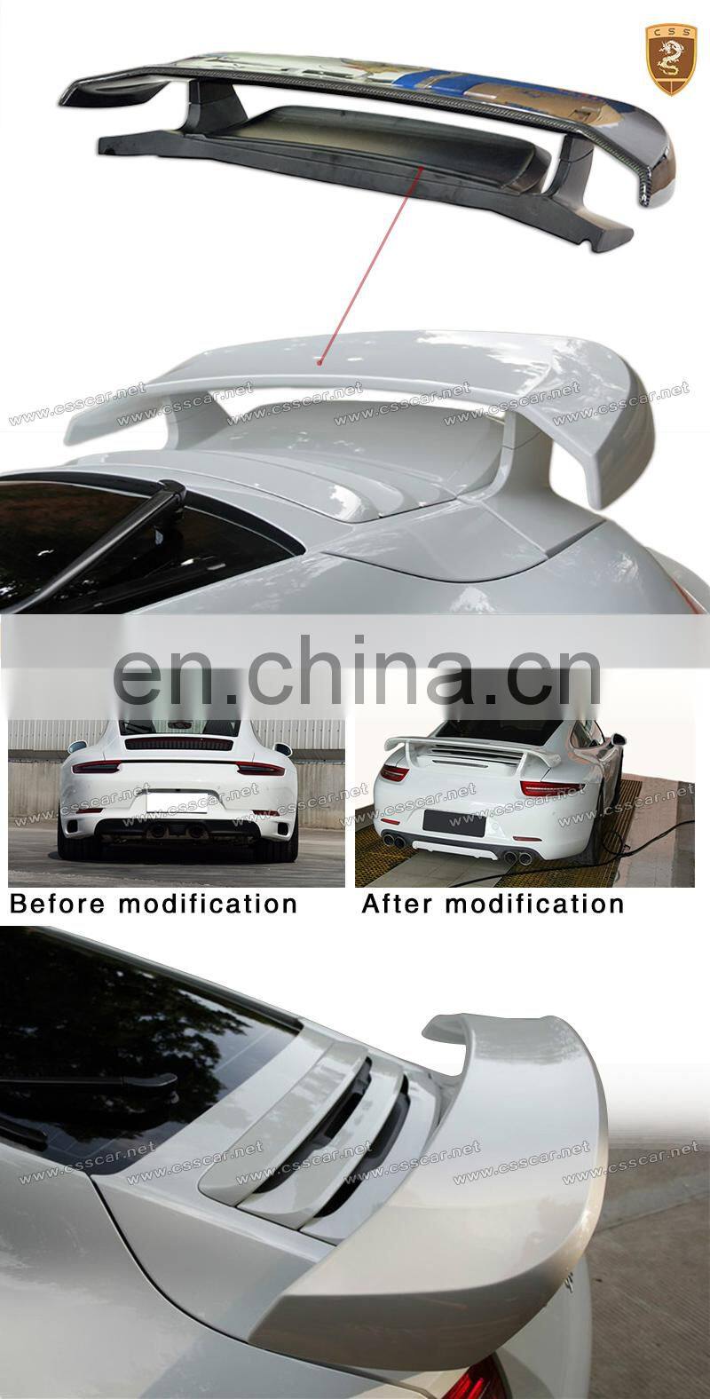 Promotional Price Body Parts FRP Car Spoiler Rear Wing For Porche 911 991 Update To T-chart 2014-2016 |