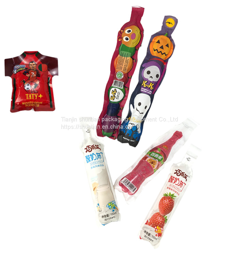 Juice yogurt laminated custom printing packaging shaped pouch plastic polythene bags for injected filling