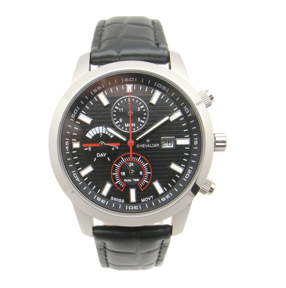 Titanium Case Fashion Gents Watches Man Genuine Leather Multi-Function Quartz Watch