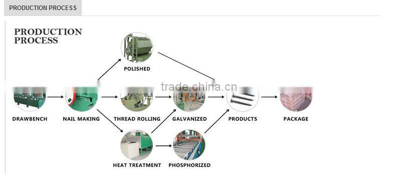nail making process:end product wire--nail making--polishing--acid picking and surface treatment as per product requirement--inspecting packing,storing& transportation