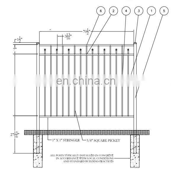 When you have a project for residential use, this classic design would be ideal for the job, made by Galvanized steel with power coated, panel size go height 5 ft, width 6 ft, picket space 10 cm, picket size 16 mm x 0.8 mm, rail size 25 mm x 1 mm, post size 50 mm * 50 mm * 1.5 mm