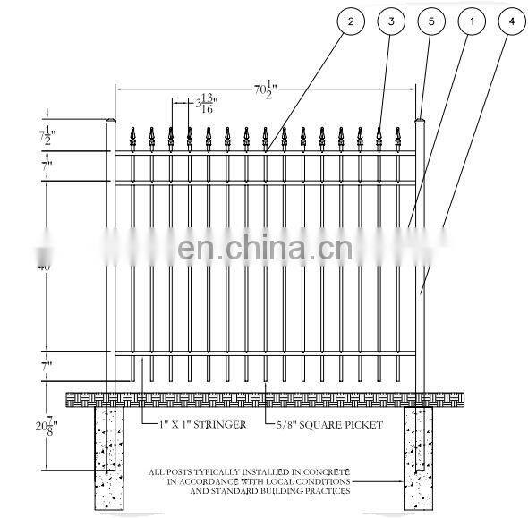 When you have a project for residential use, this classic design would be ideal for the job, made by Galvanized steel with power coated, panel size go height 5 ft, width 6 ft, picket space 10 cm, picket size 19 mm x 0.8 mm, rail size 40 mm x 1 mm, post size 60 mm * 60 mm * 1.5 mm