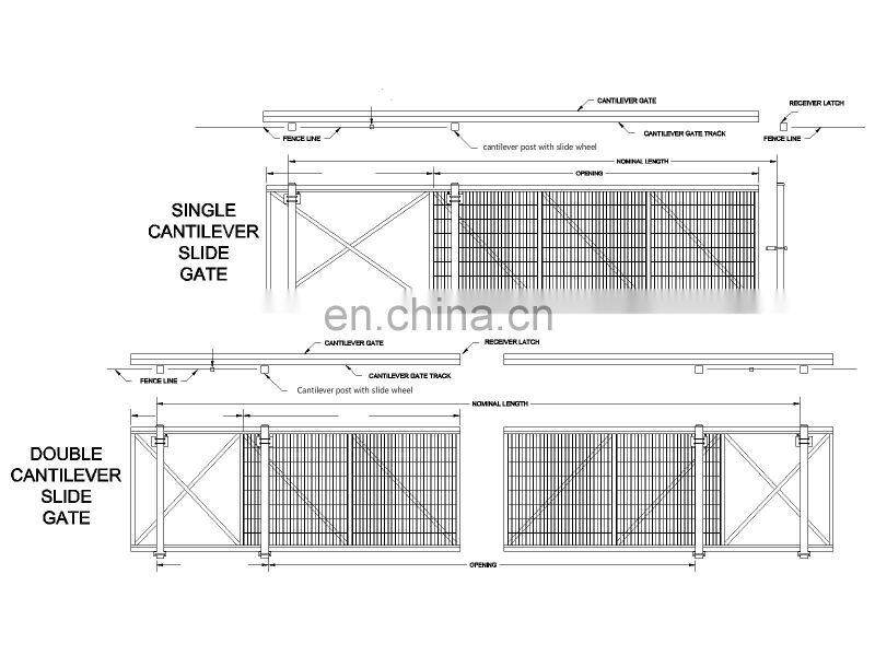 Classic H 2 m * W 8 m 3D curved wire mesh manual drive cantilever-slide fence gate system