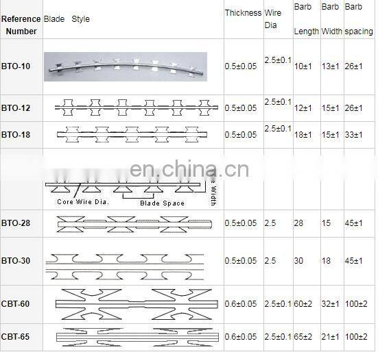 BTO22 /CBT65 Wires Hot Dipped Razor Barbed Wire Price for Sale