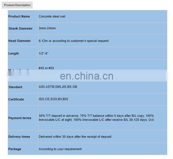 All Kinds of Standard Black Concrete Nail Concrete Steel NailUS$ 456 - 465MOQ: 1 Ton