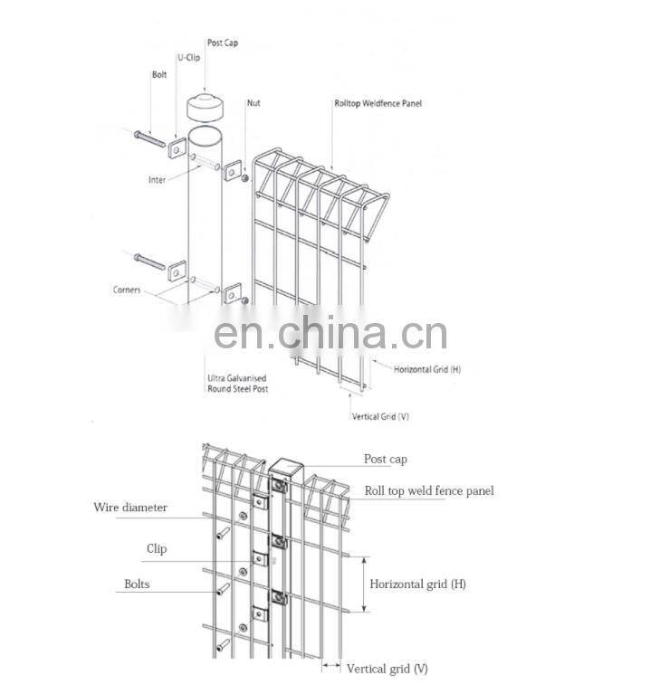 Hot Dipped Galvanized Powder Coated Roll Top BRC Fence Welded Wire Mesh Garden Fence
