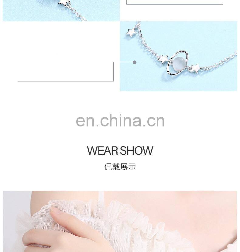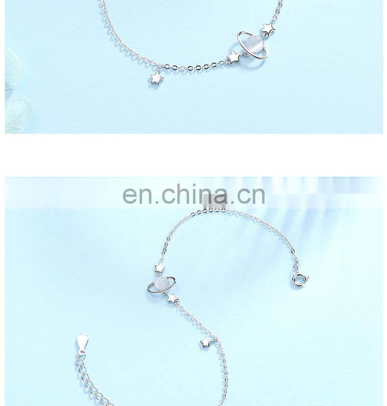 Fashion Moon Bracelet Double Layer Chain 925 Sterling Silver Star Crescent Moon Bracelet Women