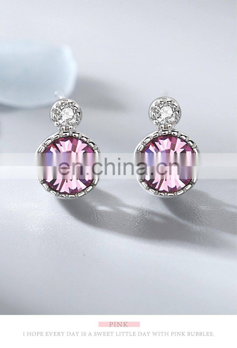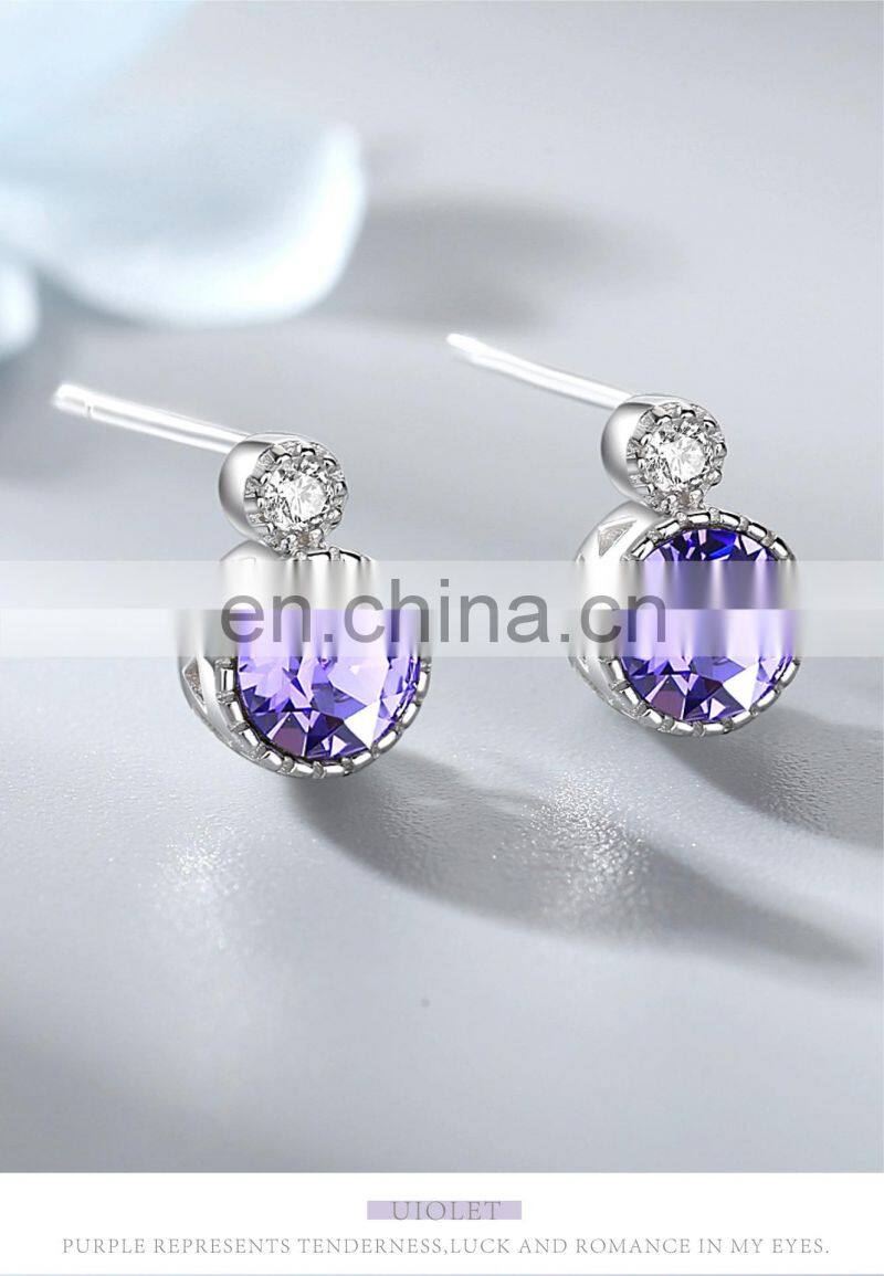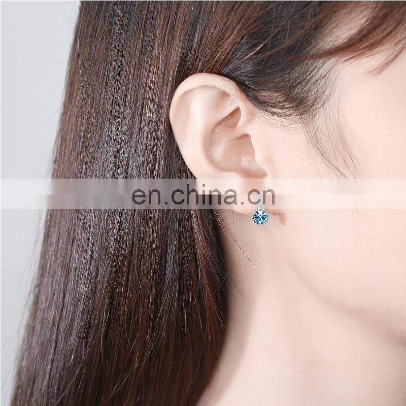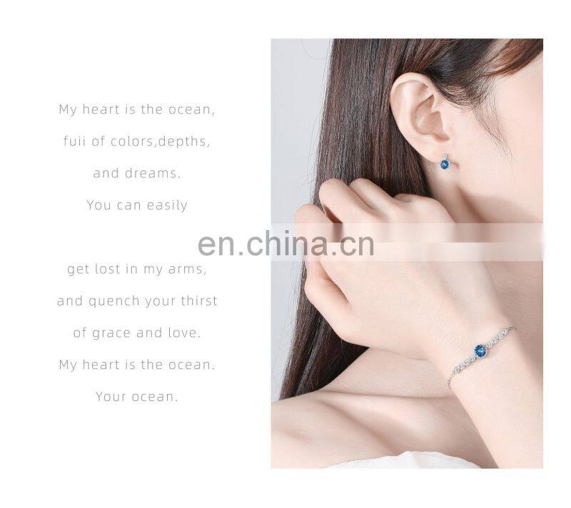 High Quality Fashion 925 Sterling Silver Jewelry Earrings Luxury Blue Crystal Ocean Heart Earrings for Women