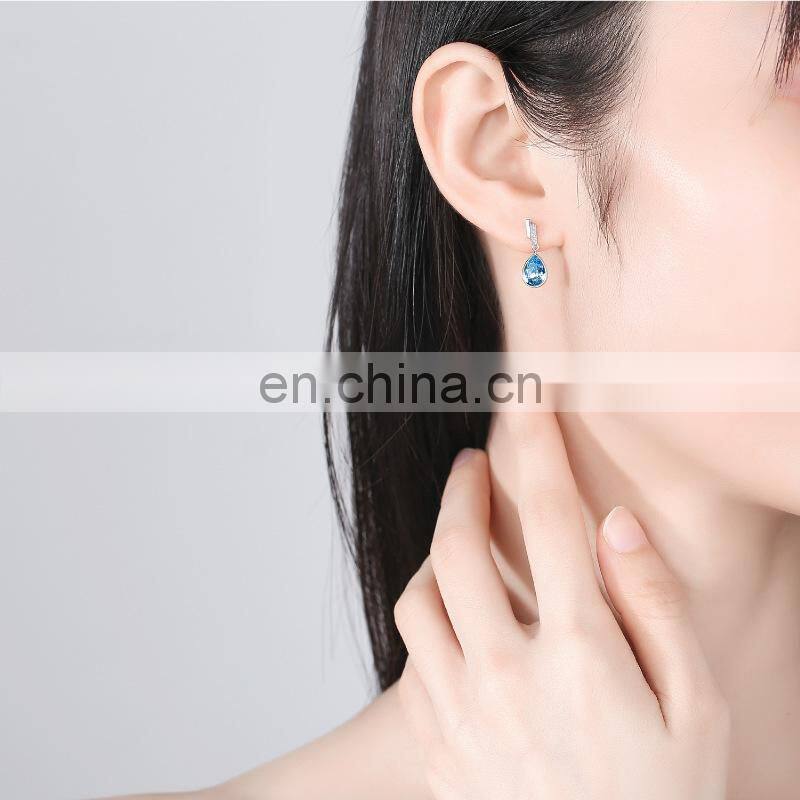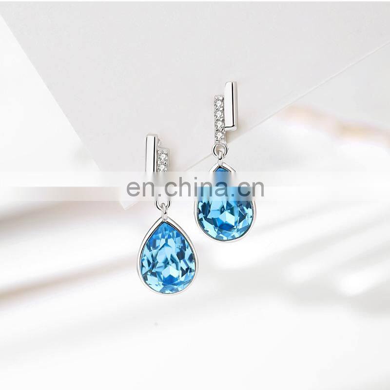925S Long Drop Blue Crystal Rhinestone Tassel Earrings for Women