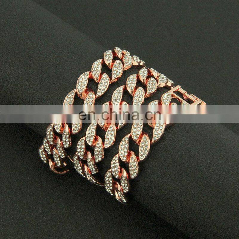 Miami Curb Bling Bling Charm Bracelet Rhinestone Crystal Cuban Link Chain Choker Hip Hop Necklace Jewelry