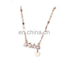Wholesale Fashion Titanium Steel Heart Shape Pendant Beaded Snake Chain Gold Necklace