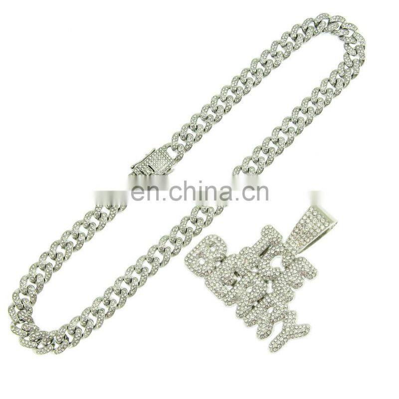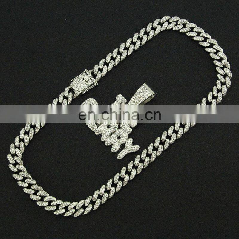 2019 Great Sale cz Tennis Chain Iced Out Diamond Letter Pendant Necklace