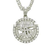 Hip Hop Men Gold Silver Color Necklace Ice Out Crystal Miami Rotatable Dollar Sign Rock Pendant Bling Rapper Jewelry For Men