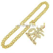 New Design 26 English Letter Pendant Jewelry Hiphops Cuban Chain 18K Gold Plated Zircon Necklace
