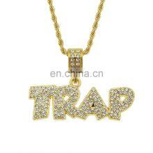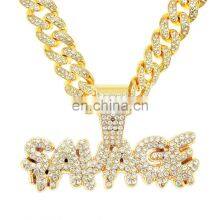 Hiphop Jewelry 2021 Micro Pave CZ Zircon Stone Pendent Iced Out Diamond Rap Charm Braided Steel Chain SAVAGE Letter Necklace