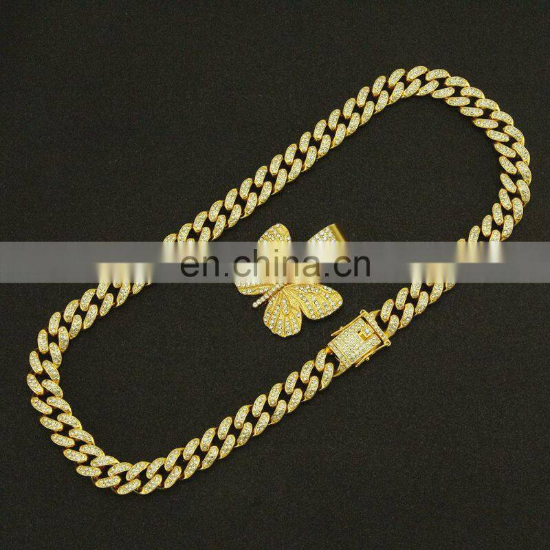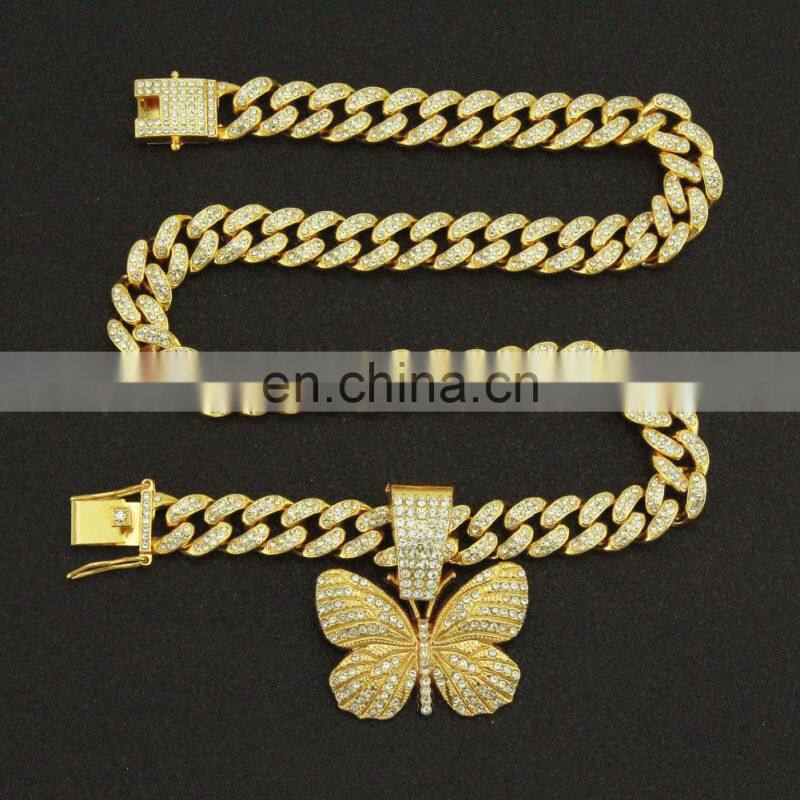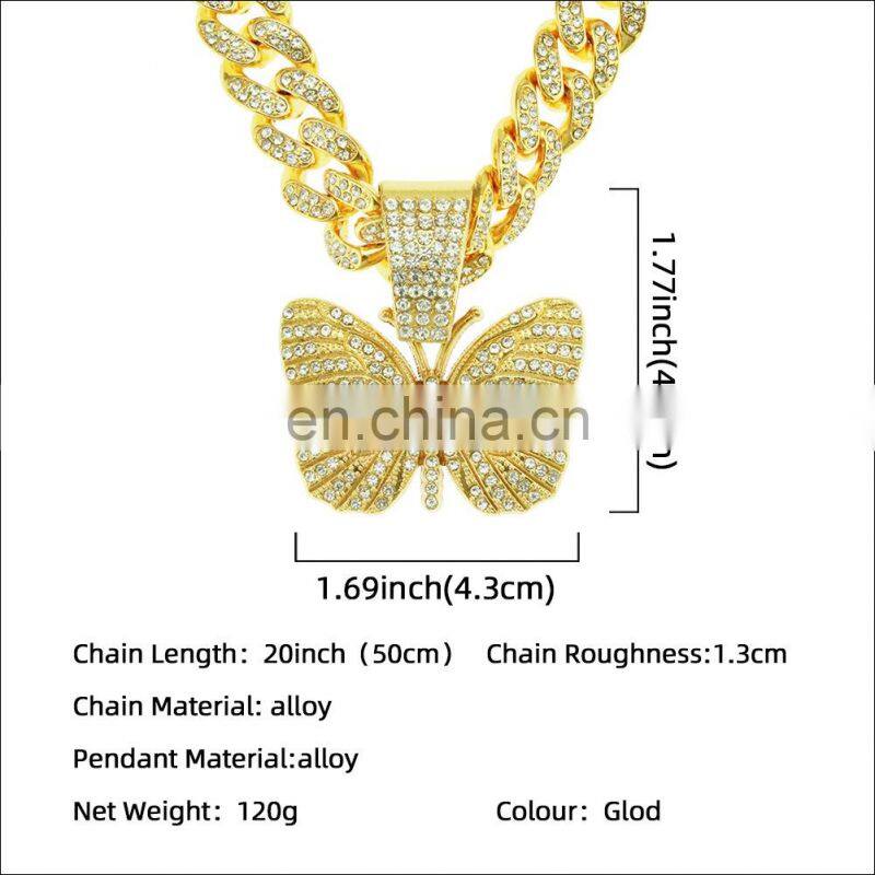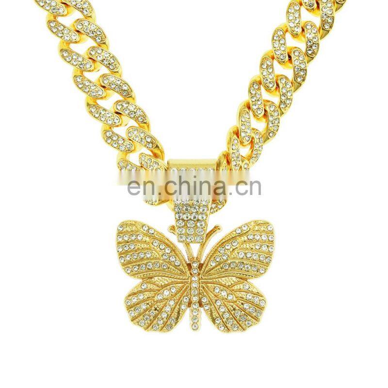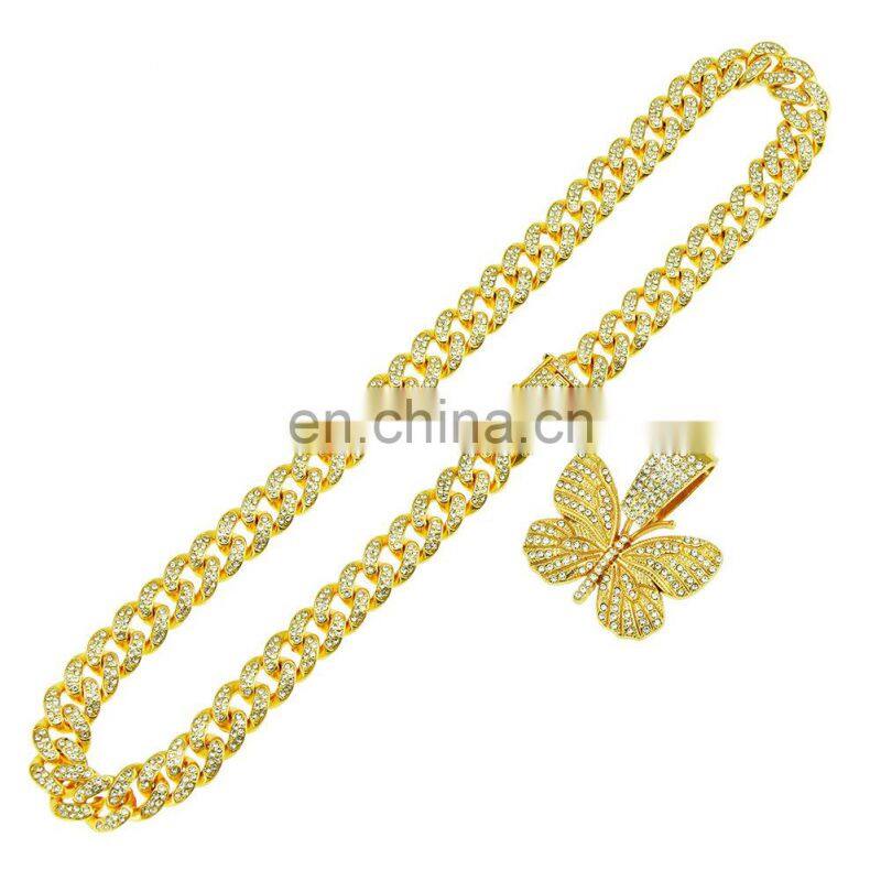 Home > Products > Necklace > Luxury Gold Women Men Full Diamond Butterfly Pendant Necklace Crystal Cuban Link Butterfly Choker Necklace