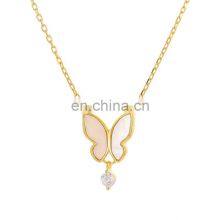 New Style S925 Sterling Silver Butterfly Necklace 18k Rose Gold Clavicle Necklace White Fritillaria Pendant